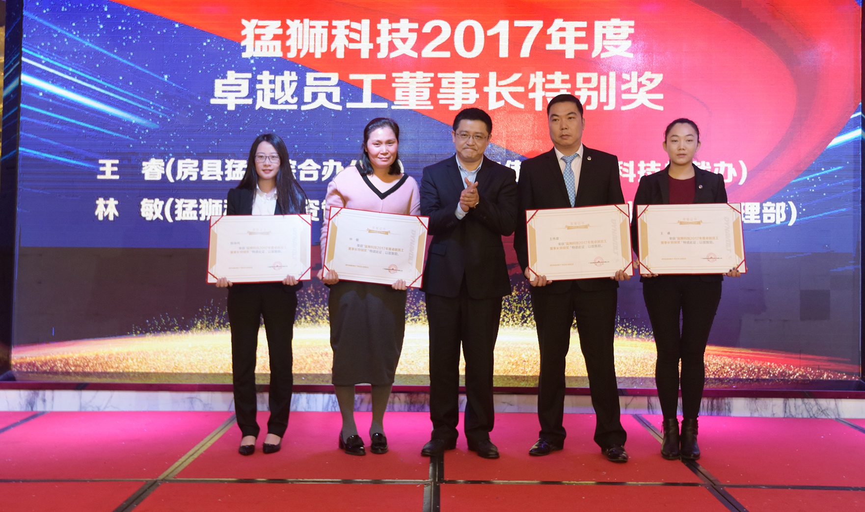 大会对荣获“猛狮科技2017年度优秀员工”、“猛狮科技2017年度优秀管理者”、“猛狮科技2017年度企业文化建设先进单位”、“猛狮科技2017年度经营管理先进单位”、“卓越团队董事长特别奖”、“卓越员工董事长特别奖”的先进个人和优秀团队进行了表彰,并揭晓了“猛狮科技2017年度十大品牌文化事件”和“猛狮科技2017年度十大科研事件”。