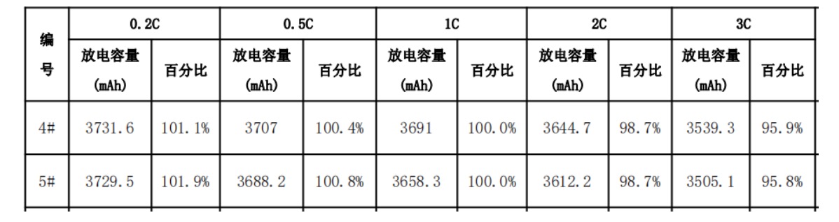 18650-3800mAh动力电池,单体电压为3.6V,正极采用超高镍材料(镍83以上)、负极采用高容量硅碳材料,电芯重量仅为46g左右,标称能量为13.68Wh,能量密度高达290wh/kg以上,拥有极佳的安全性能(可以顺利通过苛刻的重物冲击、挤压、外部短路等测试)、优秀的低温性能(-20℃1C可以放出70%以上电量)、支持2C快充(30分钟内充满70%以上)、支持9A大电流持续放电,可广泛应用于电动汽车、电动自行车、电动摩托车、移动电源、储能装备、各种电动工具等领域。