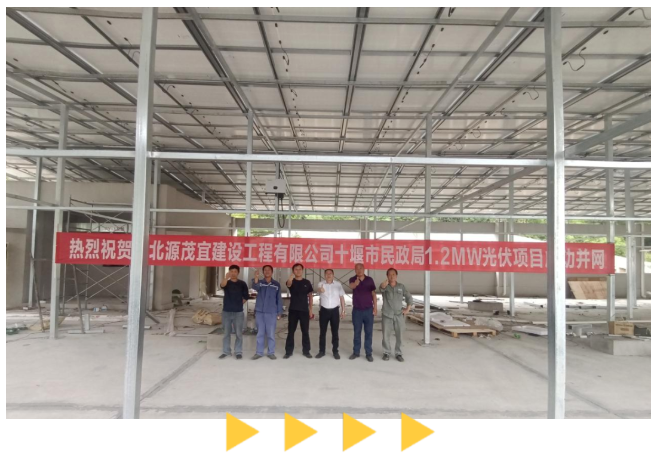 2025年1月,源茂宜公司与十堰市民政局签署了《能源管理合同》。2025年3月18日,项目正式开工。该项目由湖北猛狮光电有限公司施工运营,为确保2025年4月30日前并网发电,全体工作人员不畏辛劳,加班加点,争分夺秒赶工期经过短短的40天,该项目最终于2025年4月27日成功并网运行。